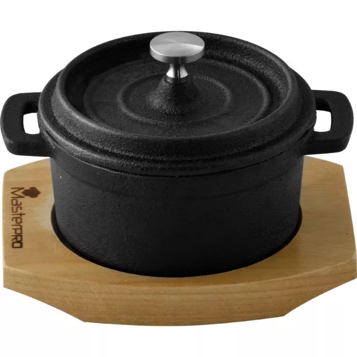 BGMP-3804-4 Чавунна каструля з кришкою міні з сер.дошка MasterPro Foodies сook&share, 10 см, 0.16 л