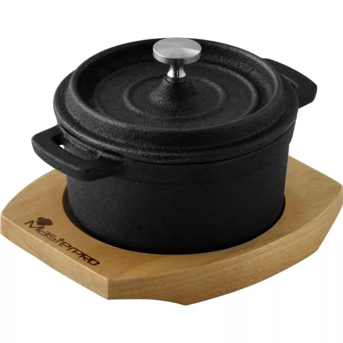 Ця міні-каструля з чавуну об'ємом 0.16 літра з дерев'яною серверувальною дошкою ідеально підходить для приготування та подачі індивідуальних порцій страв. Вона забезпечує рівномірне приготування та збереження тепла. Каструля сумісна з усіма типами плит, окрім індукційних, і може використовуватися в духовці.]]>