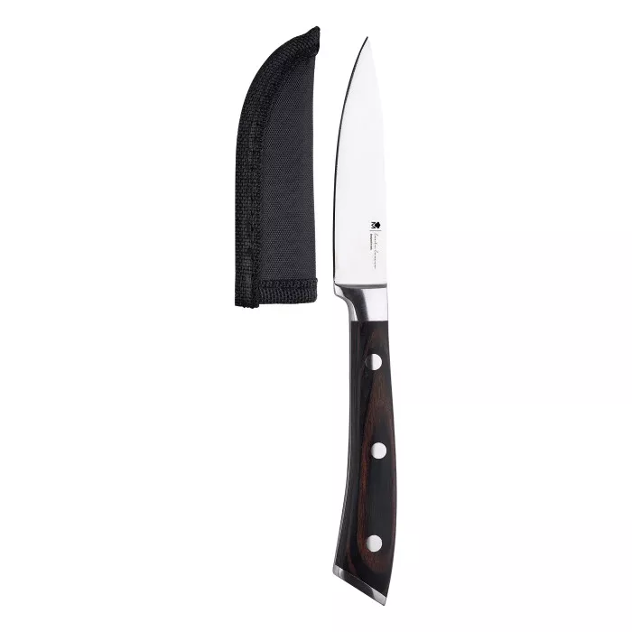 Ніж серії By Carlo Cracco, довжиною 8.75 см, виготовлений з нержавіючої сталі, ідеальний для точного очищення овочів. Ручка з ABS пластику забезпечує надійне утримання та комфорт під час роботи. Стильне поєднання чорного та металевого кольорів надає ножу сучасний вигляд. Ніж оснащений футляром для леза для додаткового захисту. Не рекомендується мити в посудомийній машині.]]>