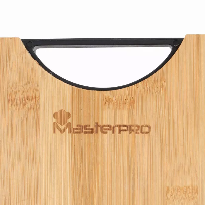Дошка для нарізання MasterPro Elegance розміром 35x25 см виготовлена з бамбука та доповнена металевими елементами, що додає їй стильного та сучасного вигляду. Натуральний колір деревини підкреслює природну естетику, а бамбук забезпечує високу стійкість до зносу. Рекомендується уникати миття в посудомийній машині, щоб зберегти первинний вигляд та якість виробу. Ця дошка стане чудовим вибором для тих, хто шукає поєднання функціональності та елегантного дизайну.]]>