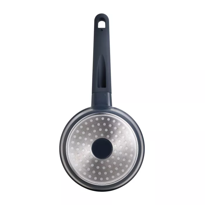 Цей ківш діаметром 16 см і висотою 8.5 см виготовлений з литого алюмінію, що забезпечує рівномірний нагрів та тривалий термін служби. Ківш виконаний у стильному кольорі індиго, що додає сучасного вигляду вашій кухні. Оснащений антипригарним покриттям Xylan Plus, ківш дозволяє легко приготувати страви та очистити після використання. Кришка зі скла та бакеліту додає зручності та функціональності. Миття в посудомийній машині не рекомендується, але ківш підходить для всіх типів плит, включаючи індукційні.]]>