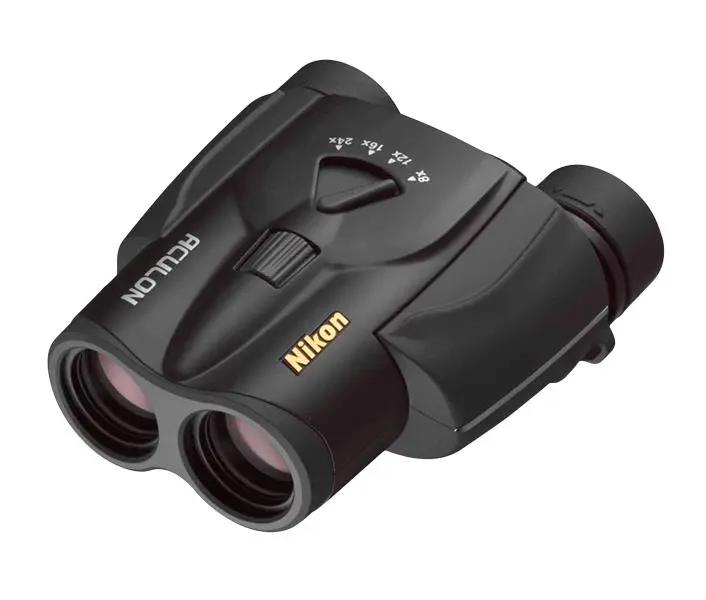 Компактні універсальні біноклі з регулятором збільшення в діапазоні від 8 до 24 разів, об’єктивом 25 мм і надзвичайно зручним керуванням масштабуванням. Лінзи Nikon із багатошаровим покриттям дають змогу бачити яскраві чіткі зображення, а поворотно-зсувні гумові наочники окуляра дозволяють легко і правильно розташувати око в точці фокуса. Завдяки легкому корпусу та конструкції, що дає змогу надійно та зручно тримати бінокль у руці, вони ідеально підходять для огляду цікавих місць під час подорожі або спостереження за спортивними подіями.