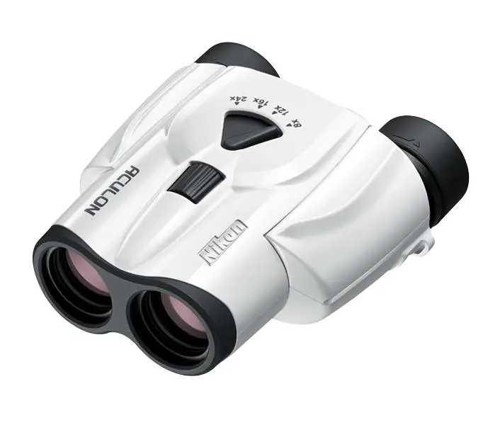 Компактні універсальні біноклі з регулятором збільшення в діапазоні від 8 до 24 разів, об’єктивом 25 мм і надзвичайно зручним керуванням масштабуванням. Лінзи Nikon із багатошаровим покриттям дають змогу бачити яскраві чіткі зображення, а поворотно-зсувні гумові наочники окуляра дозволяють легко і правильно розташувати око в точці фокуса. Завдяки легкому корпусу та конструкції, що дає змогу надійно та зручно тримати бінокль у руці, вони ідеально підходять для огляду цікавих місць під час подорожі або спостереження за спортивними подіями.