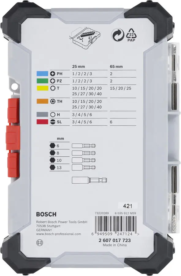 Біти Bosch Professional Extra Hard Screwdriver Bit Set, магнітний бітотримач, PH,PZ,T, SL, HEX, кейс