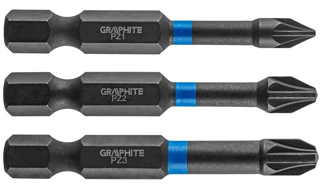 Біти GRAPHITE, набір 3шт, 1/4", ударні, PZ, 50мм, сталь S2