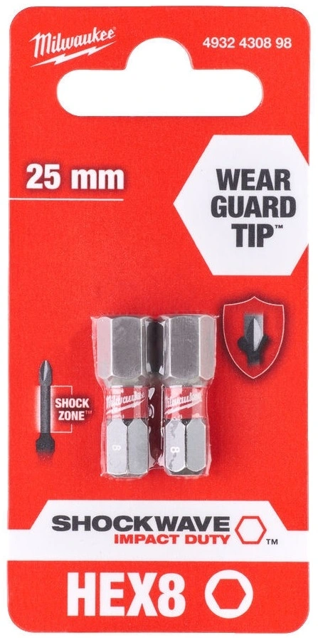 Біти Milwaukee Shockwave, Hex8х25мм, набір 2шт