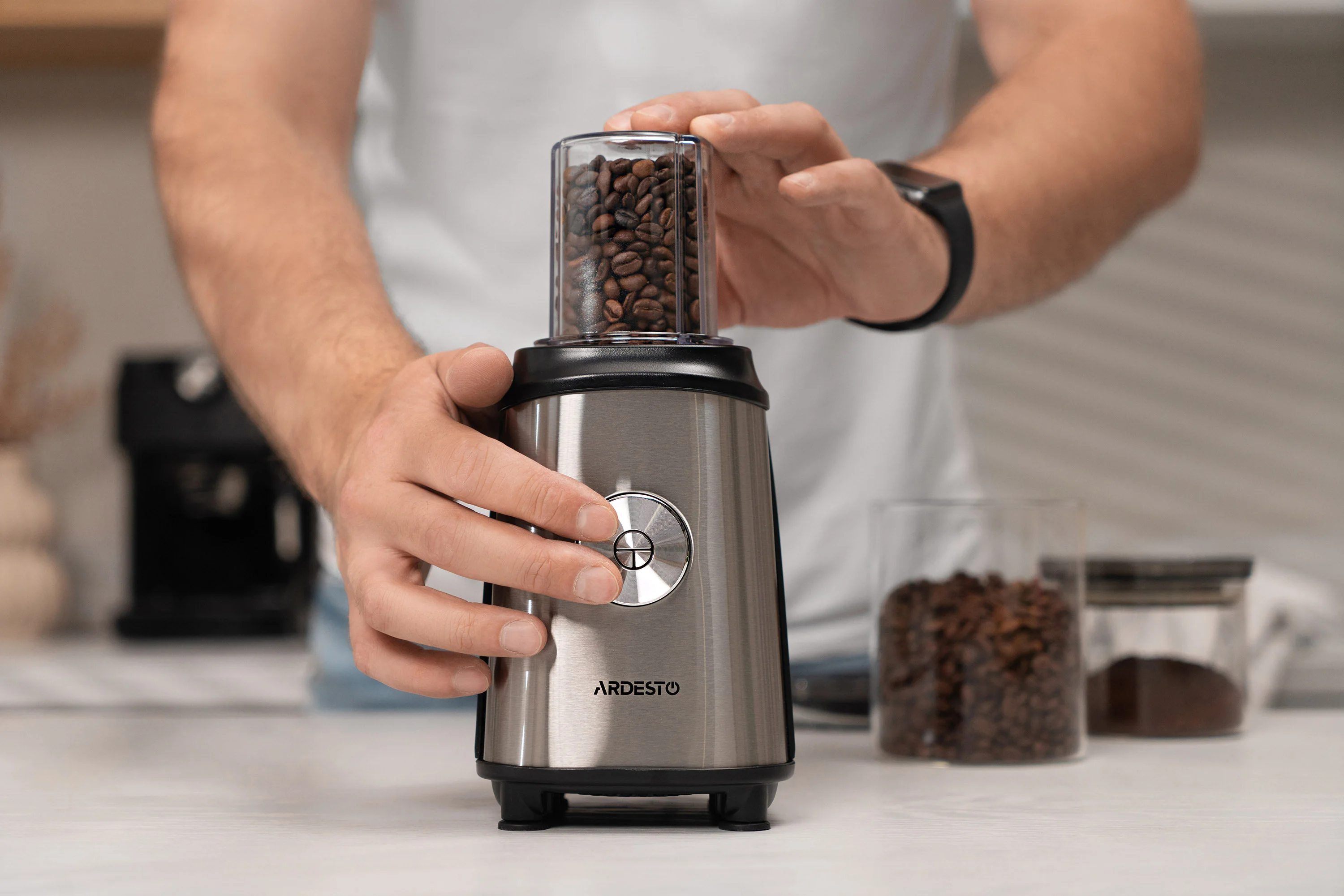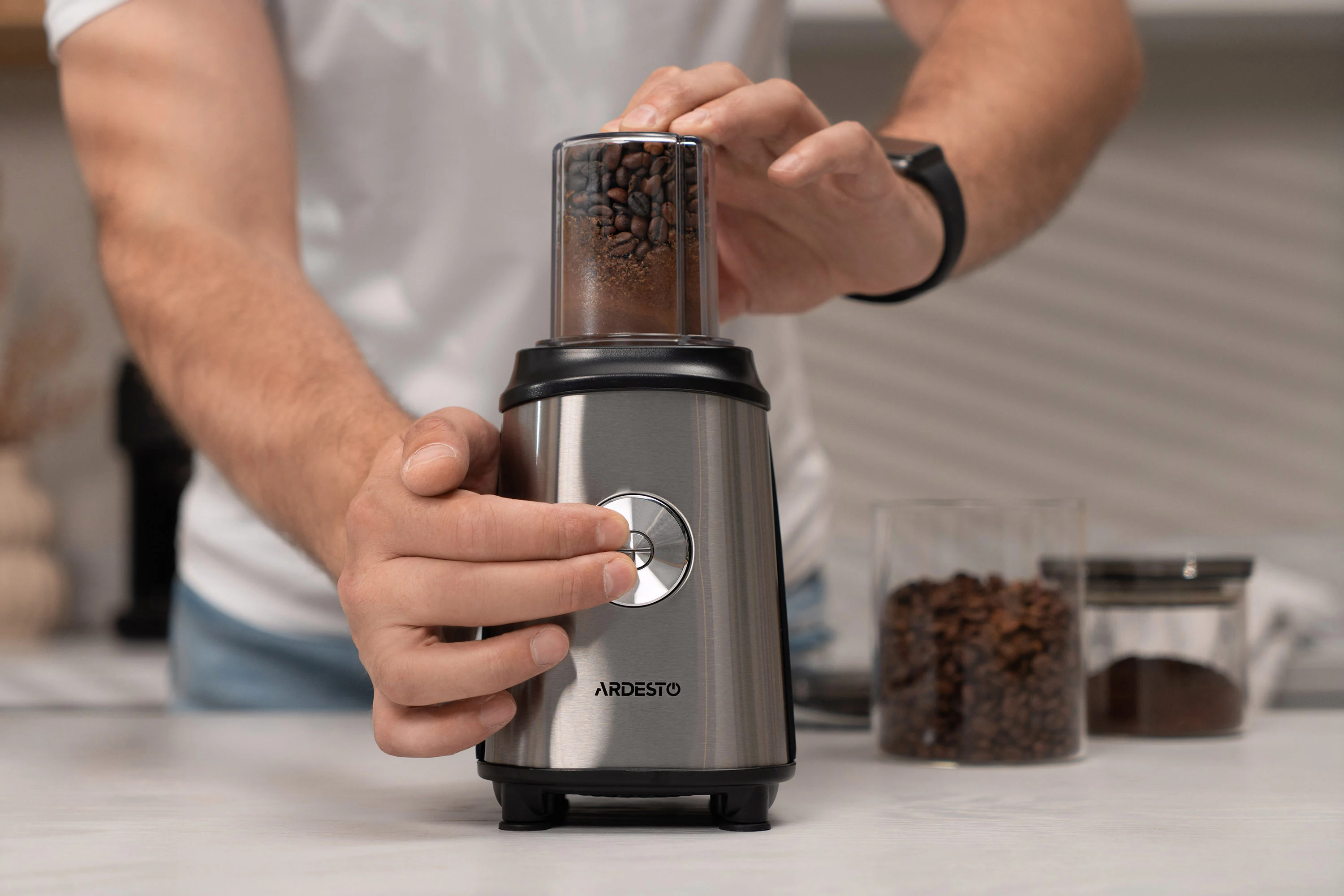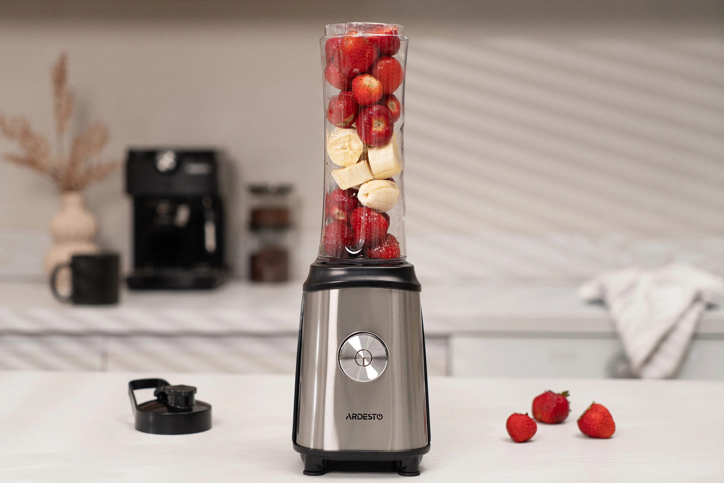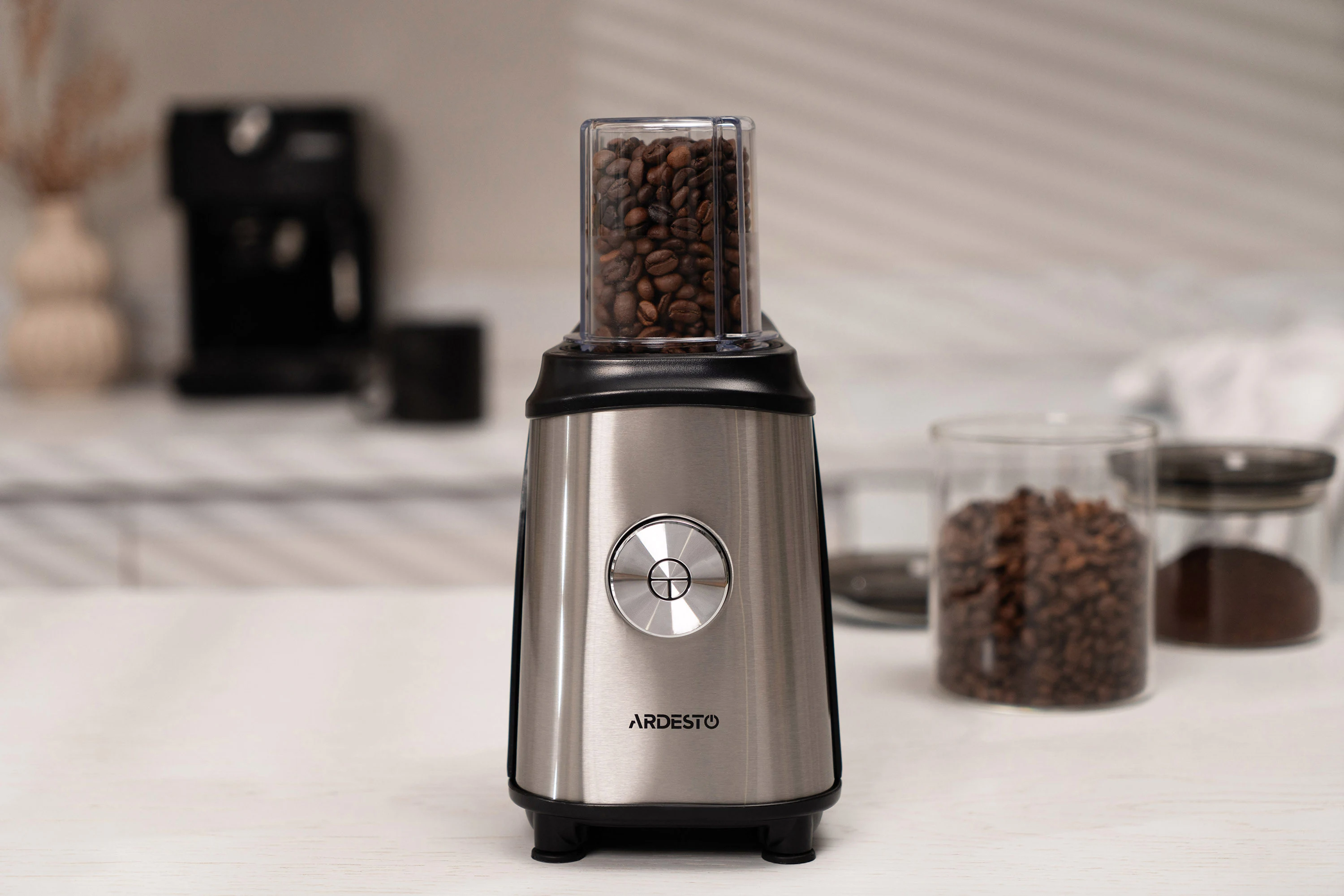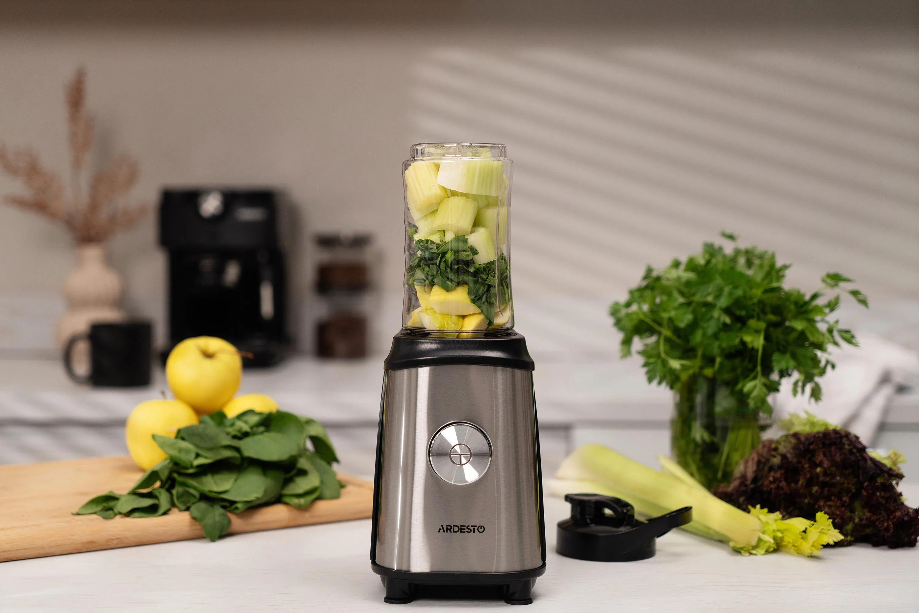 Блендер для смузі Ardesto SBG-F350, 350Вт,2в1, пляшка -600мл, пляшка -300 мл, кавомолка , чорно-сріб