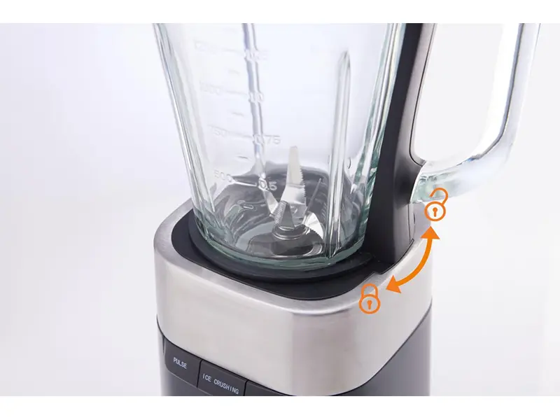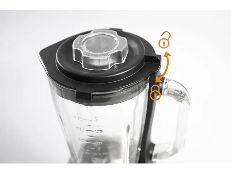 Запобіжний блокувальний механізм гарантує, що блендер не ввімкнеться, коли користувач до цього не готовий. Блендер працює тільки коли чашу належним чином установлено й зафіксовано на базі. Завдяки спеціальній технології безпеки на кришці продуктивність приладу дійсно висока, а робота — безпечна.