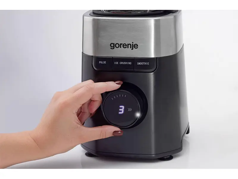 Круглий регулятор має вбудований вдосконалений світлодіодний дисплей, що пропонує ідеальне бачення вибраної швидкості. Плавним поворотом регулятора можна вибрати один із 8 рівнів швидкості. Натисніть на регулятор, щоб вимкнути блендер, коли досягнете бажаного результату.