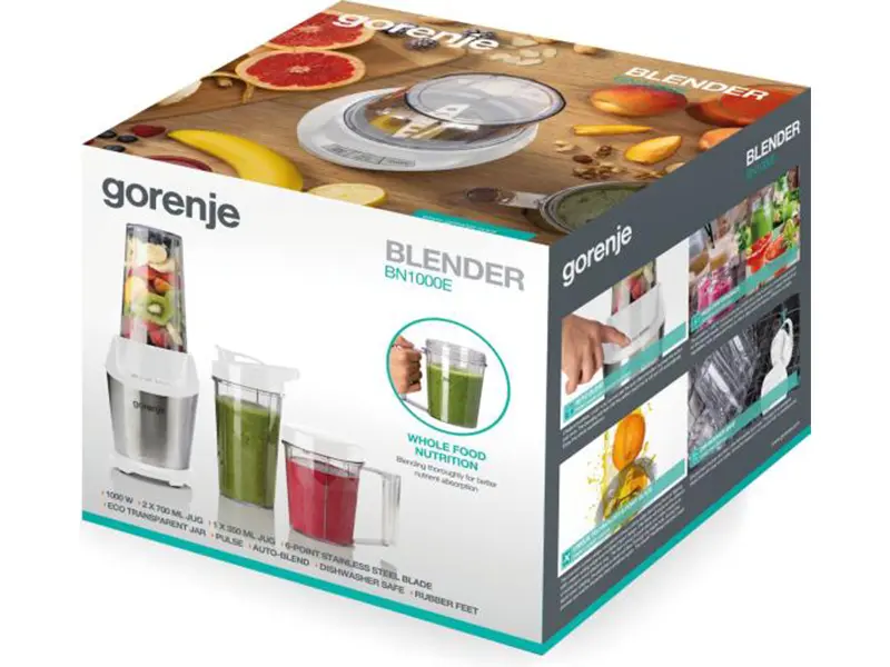 Могутній двигун на 1000 Вт забезпечує швидкість 23 000 об/хв - достатньо потужності для оптимального результату. У поєднанні з удосконаленою системою ножів він легко змішує фрукти, овочі, орехи, зерна та навіть лід до шовковисто-гладкої консистенції. Ефективний та безпечний.