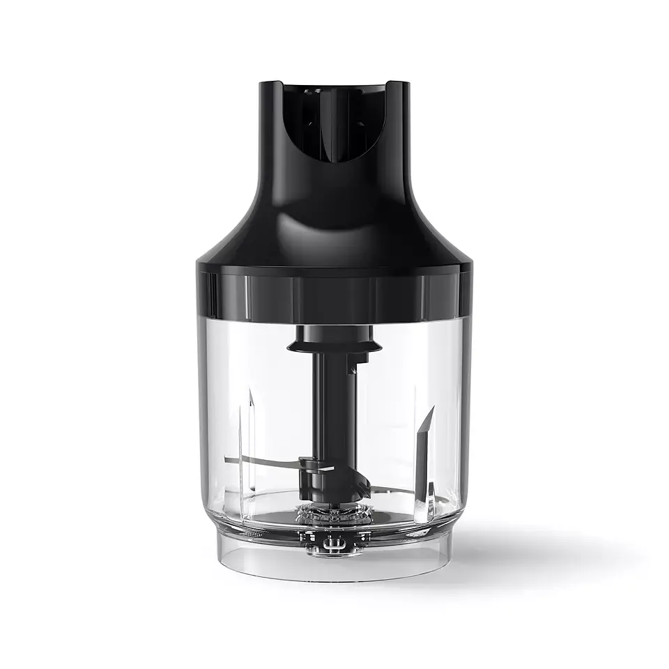 З легкістю змішуйте навіть найтвердіші інгредієнти за допомогою найпотужнішого ручного блендера Philips Series 5000. Запатентована технологія ProMix поєднує потужний двигун з унікально розробленим блоком лез та захистом від бризок, забезпечуючи оптимальне перемішування їжі, легкість у чищенні та відсутність безладу. Використовуйте компактний подрібнювач 0,5 л, щоб нарізати цибулю та зелень, подрібнити горіхи та інше. Використовуйте насадку-віночок, щоб збити повітряні вершки, приготувати шовковистий майонез, ідеальне тісто для млинців або створити вашу улюблену заправку для салатів.