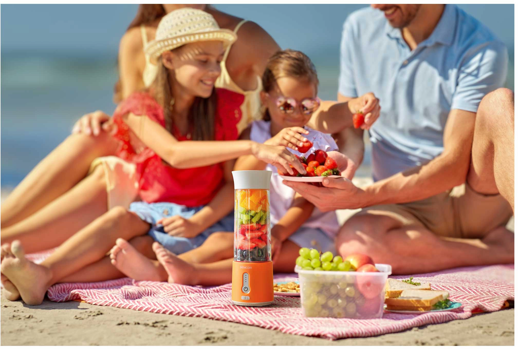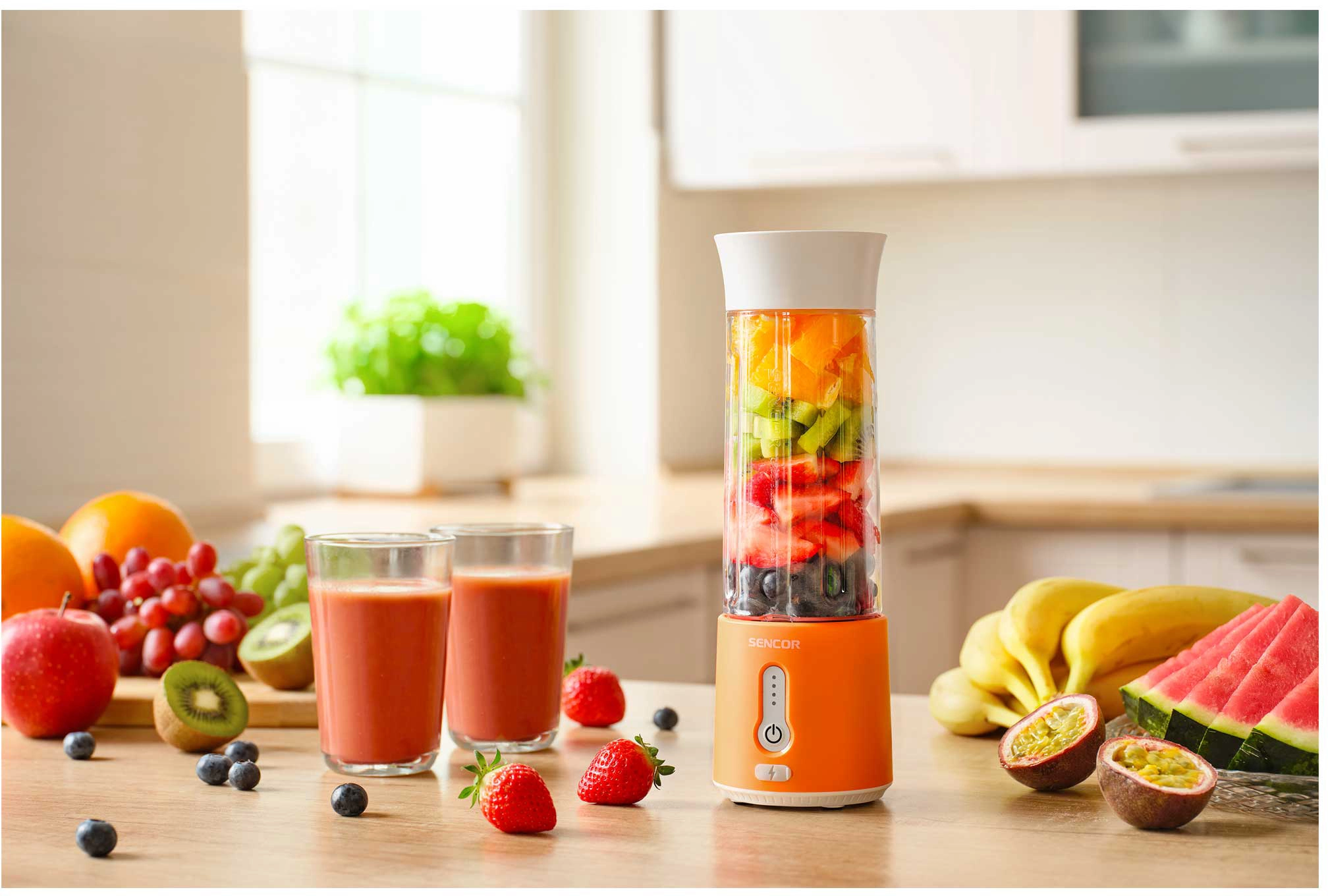 Блендер Sencor портативний для смузі 150Вт, чаша-500мл, USB-C, біло-помаранчевий