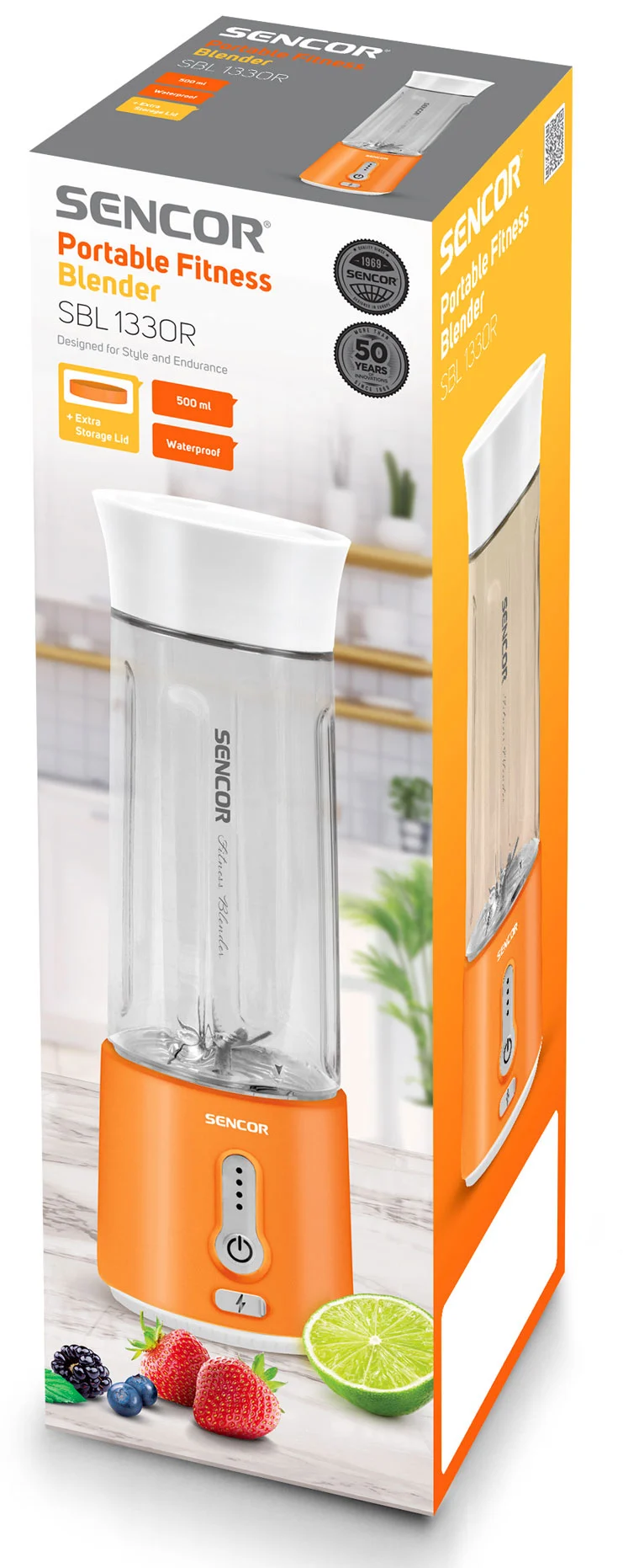 SBL133OR — це потужний портативний блендер від Sencor. Він має максимальну потужність до 150 Вт, 500-мілілітровий контейнер та водонепроникний корпус за стандартом IPX65. Блендер зручний для змішування фруктів, овочів, дитячого харчування та протеїнових напоїв, а одне заряджання батареї вистачає на 20 циклів роботи.