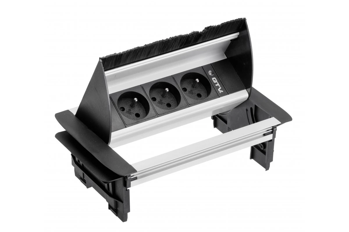 Блок розеток GTV з пропуском під кабель 3 розетки FRENCH провід 1,5м з вилкою Алюміній (Розпродаж)