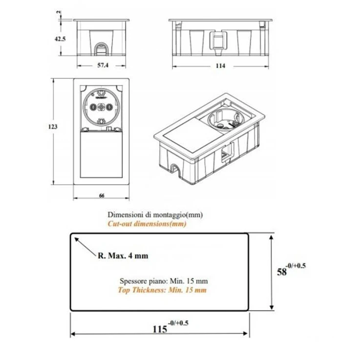 - Тип открытия розеточных блоков Со скользящей крышкой
