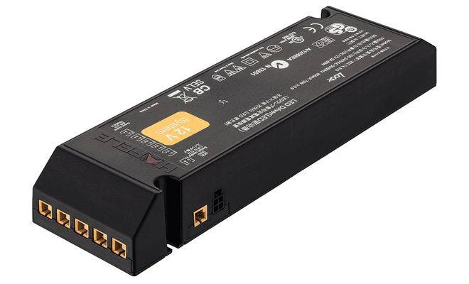 Драйвер – головний компонент усієї системи Loox. Може працювати в будь-якій країні світу незалежно від стандартної напруги та частоти в електромережі. Має вмонтований пристрій керування вимикачами. Всі вимикачі лінійки Loox можуть бути під'єднані до драйверів з універсальними вилками. Довжина кабелю від драйвера до вимикача максимум 6 м. Потужність: (Вт) 0 – 60. Напруга на вході: 100 – 240 В~; 50 – 60 Hz. Напруга на виході DC: 12  Номінальний вихідний струм: 5 A. Споживання енергії у сплячому режимі: <0.5 Вт. Рівень захисту: IP20. К-сть роз'ємів: 6. З універсальним роз'ємом для кабелю. Колір: Чорний. Розміри (Д x Ш x В мм): 208 x 56.5 x 30