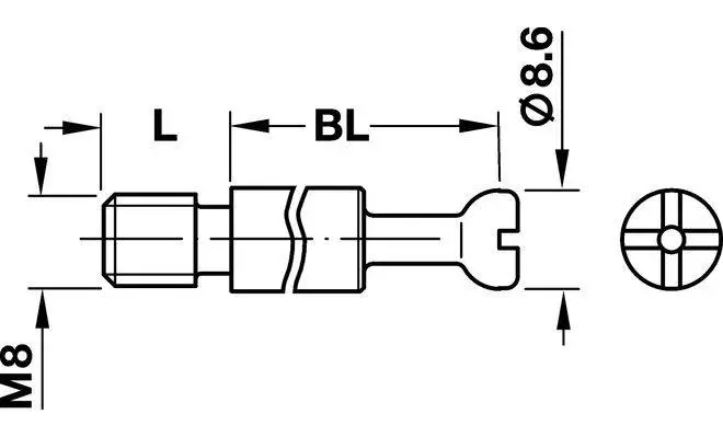 З'єднуючий болт Maxifix з різьбою М8, виготовлений з оцинкованої сталі. Параметри болта(мм) : розмір свердління/діаметр голівки - 55/8,6 мм.