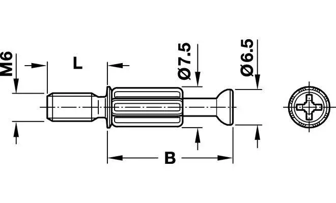 Болт стяжки MINIFIX S200 стальной без покрытия с пластиковой муфтой, D6.5/7.5мм глубина сверления 3