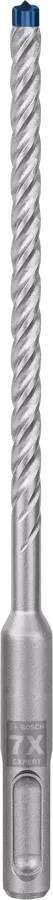 Свердління армованого бетону – важка робота, і вона традиційно позначається на свердлах. Звичайні свердла з двома кромками застрягають в арматурі та згодом ламаються. Суцільно твердосплавна головка ударного свердла EXPERT SDS plus-7X має вдосконалену конструкцію з 4 кромками та виготовлена з суцільного найміцнішого металу. Вона не заклинює та не має слабких місць під час удару. Ударні свердла Bosch EXPERT SDS plus-7X пропонують неперевершену продуктивність, надійність і довговічність будівельникам, які регулярно свердлять бетон та армований бетон, наприклад для монтажу дюбелів або обладнання. Це аксесуар EXPERT для перфораторних дрилів SDS plus.