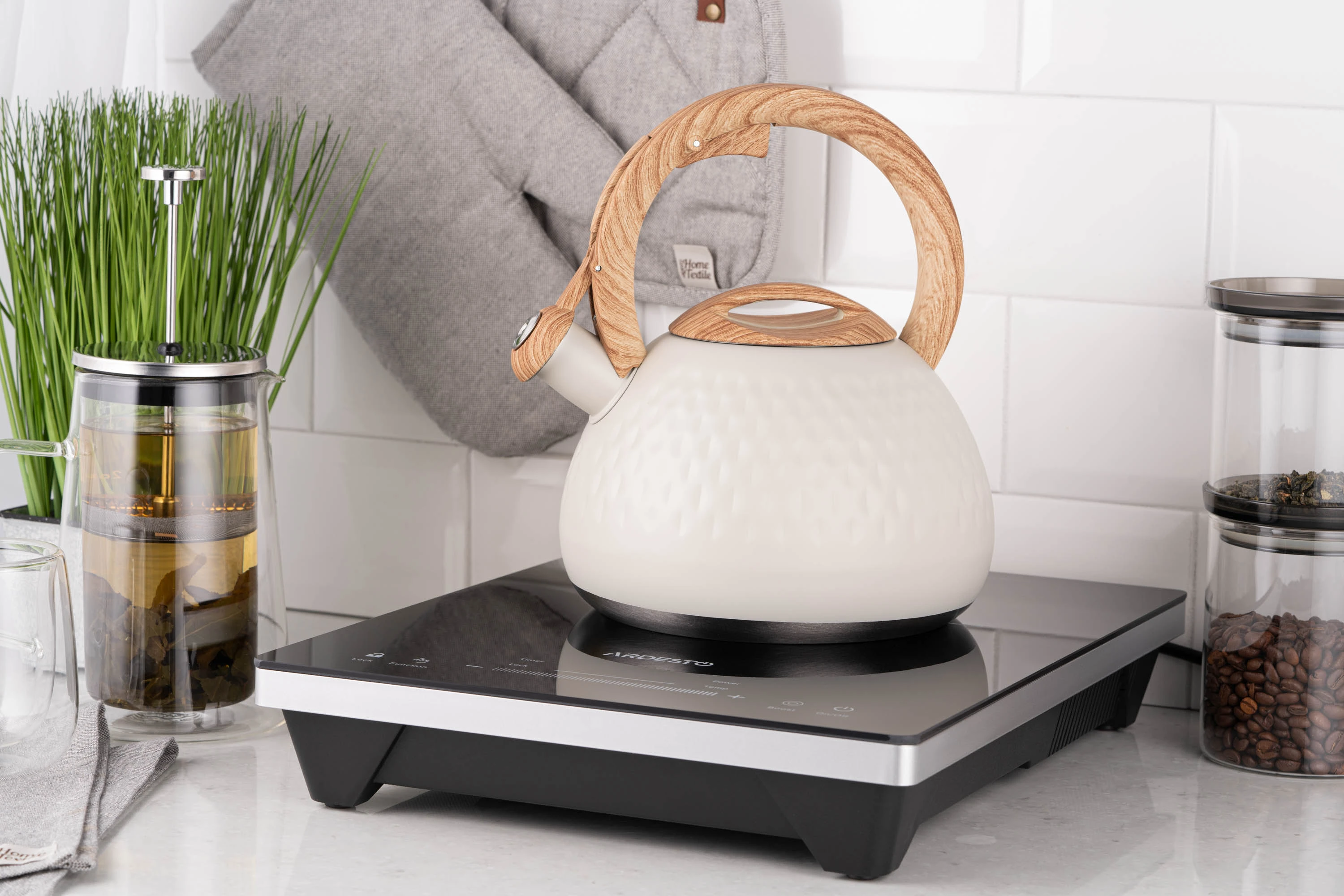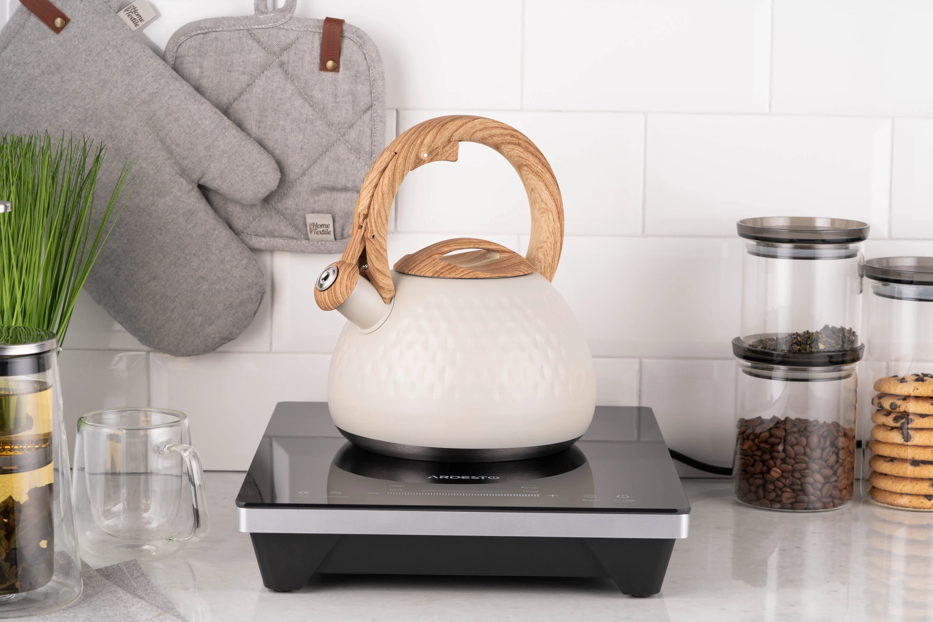 Чайник ARDESTO Gemini виготовлений із якісної нержавіючої сталі. Об’єм – 2,5 л, що робить його оптимальним для приготування чаю для всієї родини чи компанії друзів. Товщина корпуса і дна – 0,6 мм. Сучасний дизайн вдало доповнює зручне руків’я з нейлону із soft-touch-покриттям, яке не нагрівається під час кип’ятіння. Універсальність чайника зумовлює сумісність з усіма видами плит, зокрема газовими, електричними, склокерамічними, галогенними та індукційними.