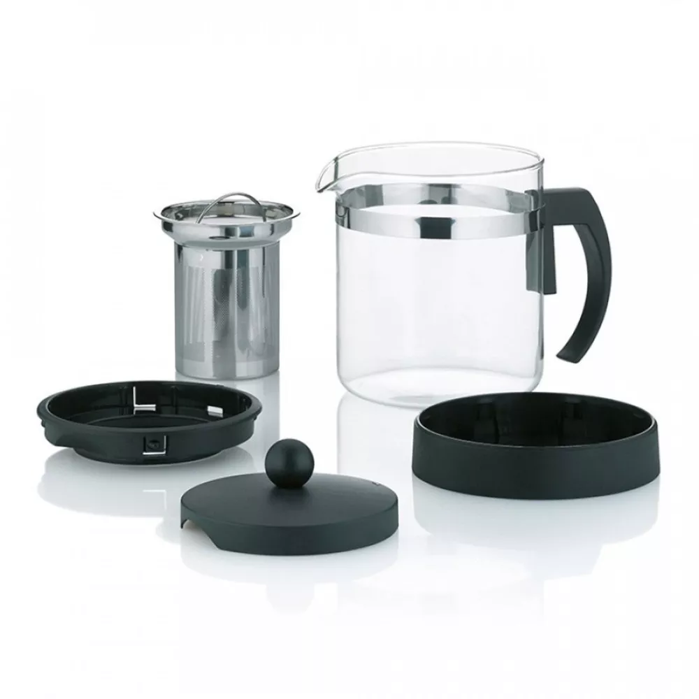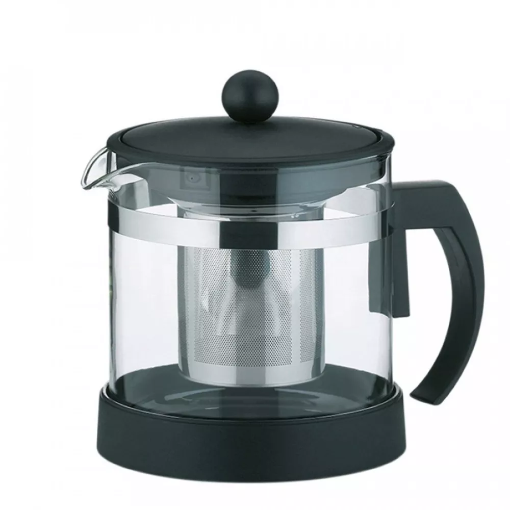 Скляний чайник для заварювання з не скляною ручкою KELA AURON від провідного німецького виробника посуду та начиння для кухні KELA, має всі переваги скляного варіанту, але більш зручний у використанні. Крізь скляні стінки ви зможете милуватися за чарівним видовищем заварювання чаю, як листя розгортається під впливом води, віддаючи напою свій аромат та колір. Разом з тим, зручна пластикова ручка та кришка, зроблять його більш функціональним і простим у використанні. Чайник також оснащений знімним ситечком для заварки з нержавіючої сталі 18/10, що дозволить відокремити заварку від напою, а зручний носик дозволить налити чай в чашку не проливши ні краплі мимо.