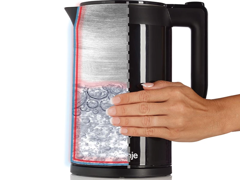 Підвійна стінка забезпечує кращу ізоляцію та довше зберігає воду гарячою. Крім того, завдяки їй силікон не потрапляє всередину, а також знижується температура чайника ззовні, коли в ньому кип'яток чи гаряча вода.