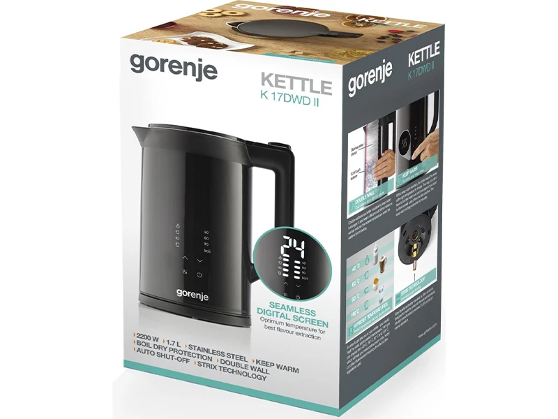 Елегантний дизайн із бездоганним цифровим екраном стане ідеальним доповненням до вашої кухні. Цей чайник, відповідаючи будь-якому стилю та створюючи ідеальний стильний вигляд, потурбується про те, щоб ваші гарячі напитки були ще приємнішими. Оптимальної температури для найкращого смаку досягти так легко, що ви просто задоволено посміхнетесь.