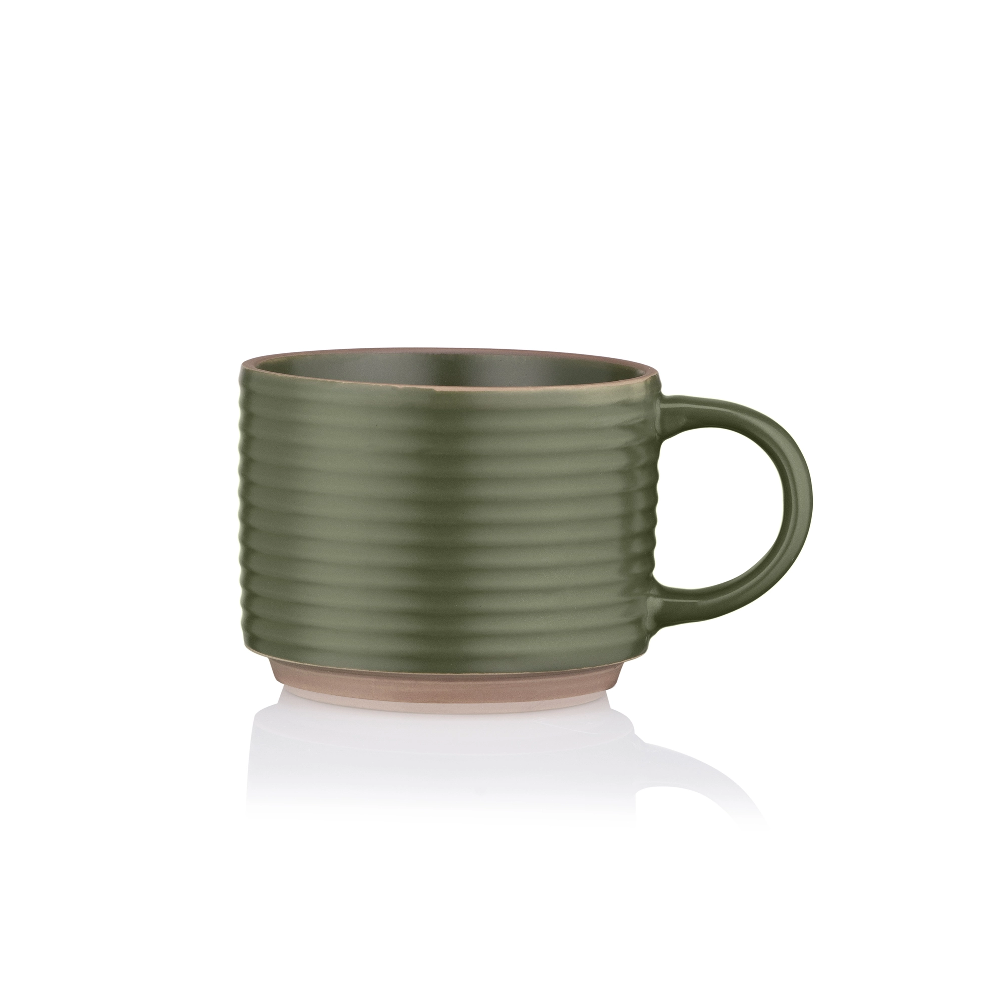 Керамічна чашка серії Anzio має об’єм 300 мл і виконана в елегантному зеленому кольорі. Є вдалим вибором на щодень, адже зручна щодо догляду – можна мити в посудомийній машині й використовувати в мікрохвильовій печі. Верхній діаметр становить 9,2 см за висоти 7,2 см, що зумовлює зручність.