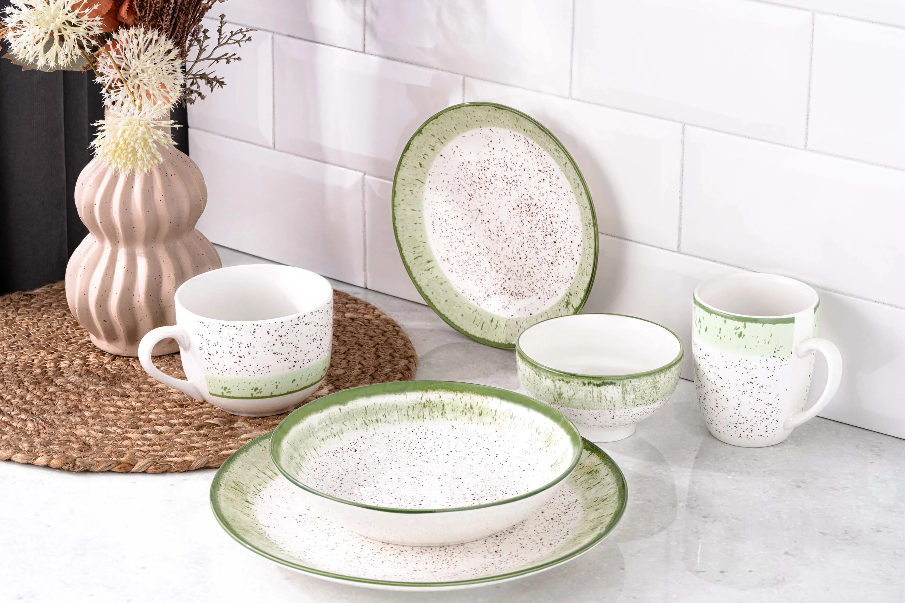 Чашка серії Siena – це елегантний і практичний елемент сервірування, який надасть столу вишуканості та стилю. Виріб виготовлено з порцеляни – міцного та стійкого до подряпин і сколів матеріалу, який забезпечує тривале використання. Завдяки діаметру об’єму 500 мл у чашці можна подавати різноманітні напої. Основні кольори – білий і зелений, тож пасуватиме чи не до будь-якого дизайну кухні.