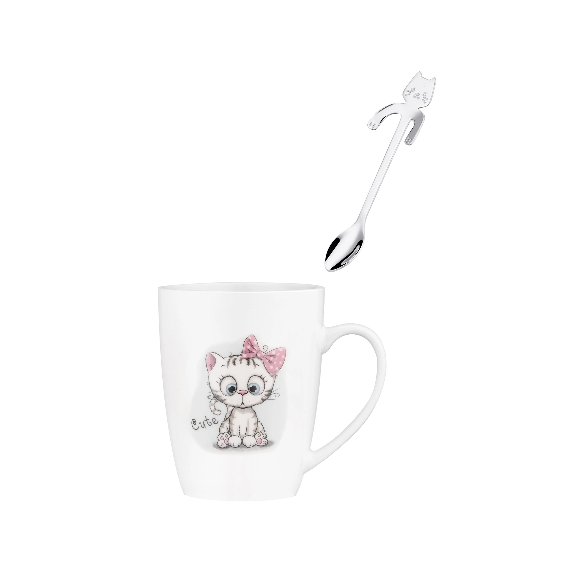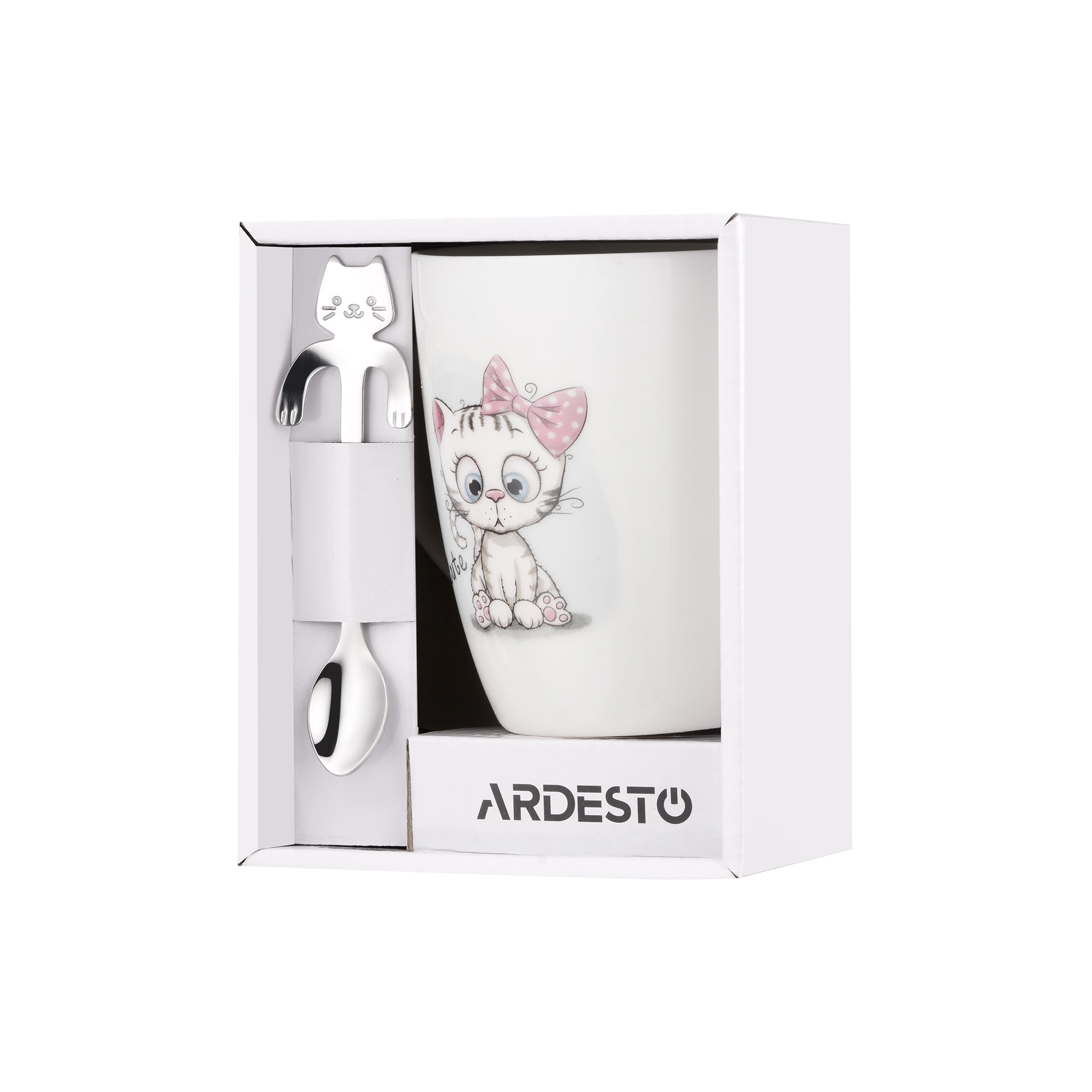 Чашка з ложкою Ardesto Cute, 320мл, порцеляна, нержавіюча сталь, білий
