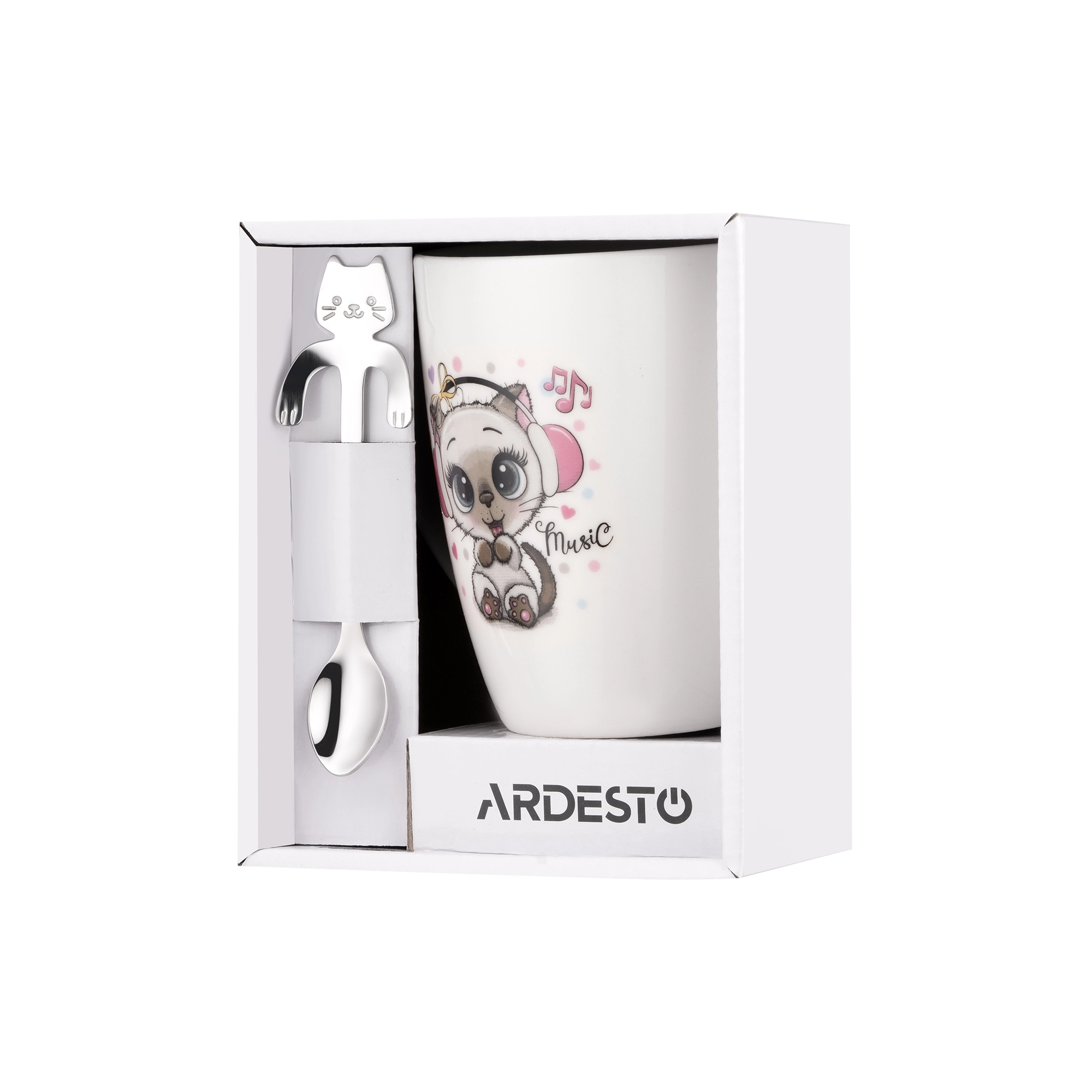 Чашка з ложкою Ardesto Music, 320мл, порцеляна, нержавіюча сталь, білий