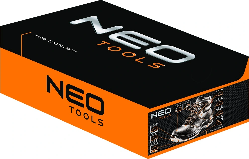 Черевики робочі NEO ― це основний засіб особистого захисту під час праці. Виготовлені з високоякісної шкіри, має світловідбивні вставки, що гарантують підвищену видимість користувача у будь-яких умовах. Протиковзна підошва має систему амортизації струсів, що забезпечують безпеку та зручність. Металевий вкладиш проти пробиття та металеве зміцнення в носку захищають від механічних травм. Завдяки м’якій підкладці всередині черевика досягається високий рівень комфорту під час праці. Маркування CE ― це гарантія безпеки, яка доводить, що продукт відповідає всім вимогам Європейського Союзу. Марка NEO відповідає очікуванням професіоналів.