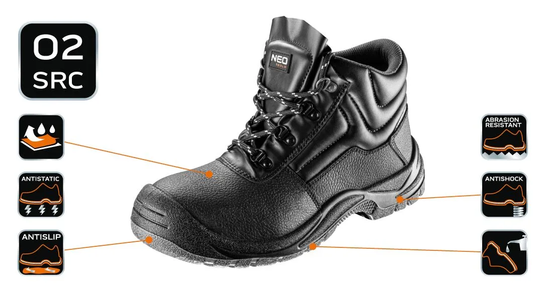 Черевики робочі Neo Tools, шкіра, ударопоглинання, O2 SRC, СЕ, р.46(30.7см), чорний