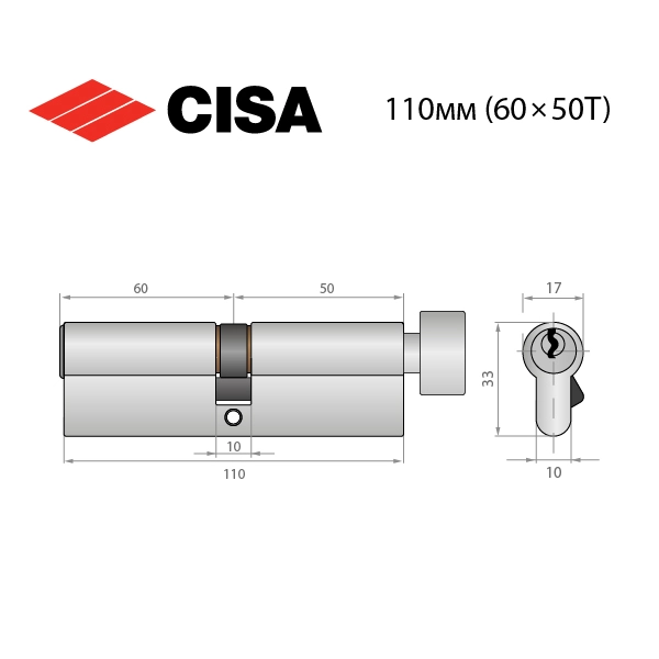 Цилиндр CISA C2000 110T (60*50T) никель матовый