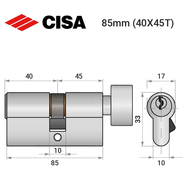 Цилиндр CISA C2000 85T (40*45T) никель матовый