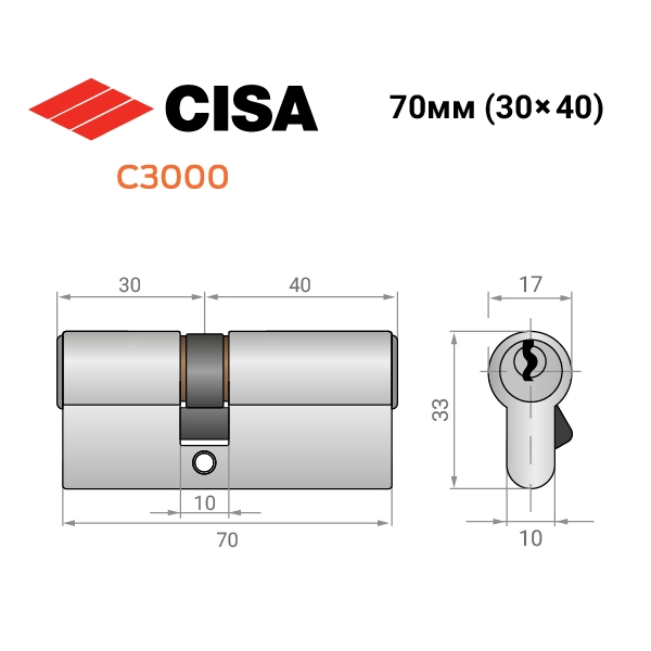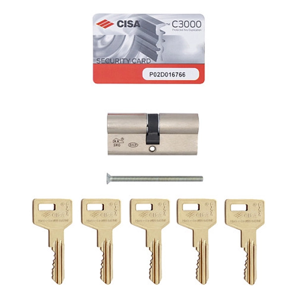 Цилиндр CISA C3000 70 (30*40) никель матовый 5 ключей