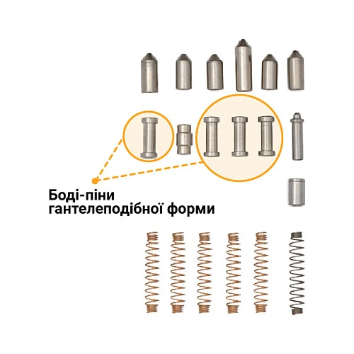 - Захист від відмичок – боді-піни спеціальної гантелеподібної форми.