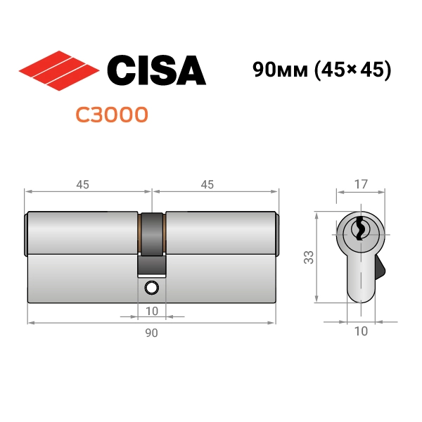 Цилиндр CISA C3000 90 (45*45) никель матовый
