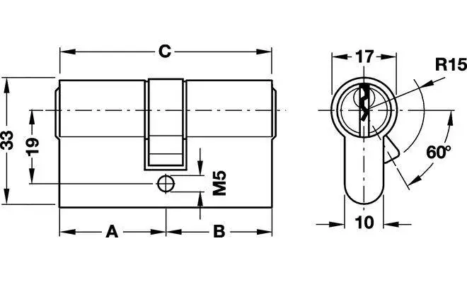 Циліндр двосторонній латунь полірований 30.5/30.5 мм різне закриття 91691020
