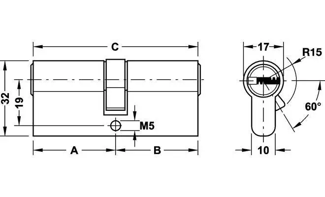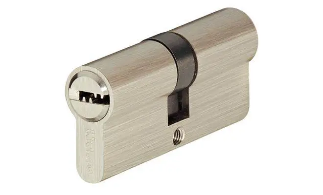 Циліндр дверного замка. З різним зачиненням, з 5- ма штифтовими фіксаторами. Розміри циліндра: 31,5 х 31,5 = 63 мм. Матеріал: латунь. Поверхня / колір: нікельований, матовий. Обсяг поставки: 1 профільний; циліндр; 3 нікельованих ключа; 1 кріпильний гвинт.