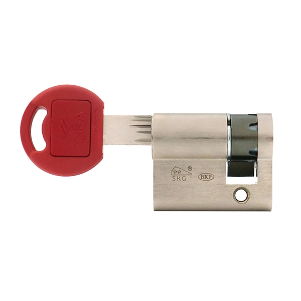 Всі кодуючі піни виготовлені з гартованої сталі підвищеної твердості, що створює захист від висвердлювання. Також в плагу циліндра розташовані захисні штифти. Разом в комплексі вони ускладнюють проходження свердла та при спробі свердління воно ламається. Це підтверджується сертифікатом з високим рівнем зламостійкості – SKG** (дві зірки з трьох можливих). Але ми все одно рекомендуємо при встановленні вхідних дверей використовувати врізну броненакладку. Вона підсилить конструкцію та завадить будь-якій маніпуляції із циліндром.