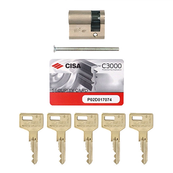 Цилиндр половинка CISA C3000 40 (30*10) никель матовый 5 ключей