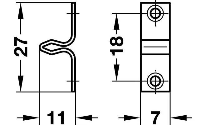 Матеріал: засувка: пруж. сталь, сполучна деталь сталь. Поверхня: засувка: синє оцинкування, сполучна деталь: латунь. Розміри (Ш х Д х В): 15 x 10 x 30 мм.