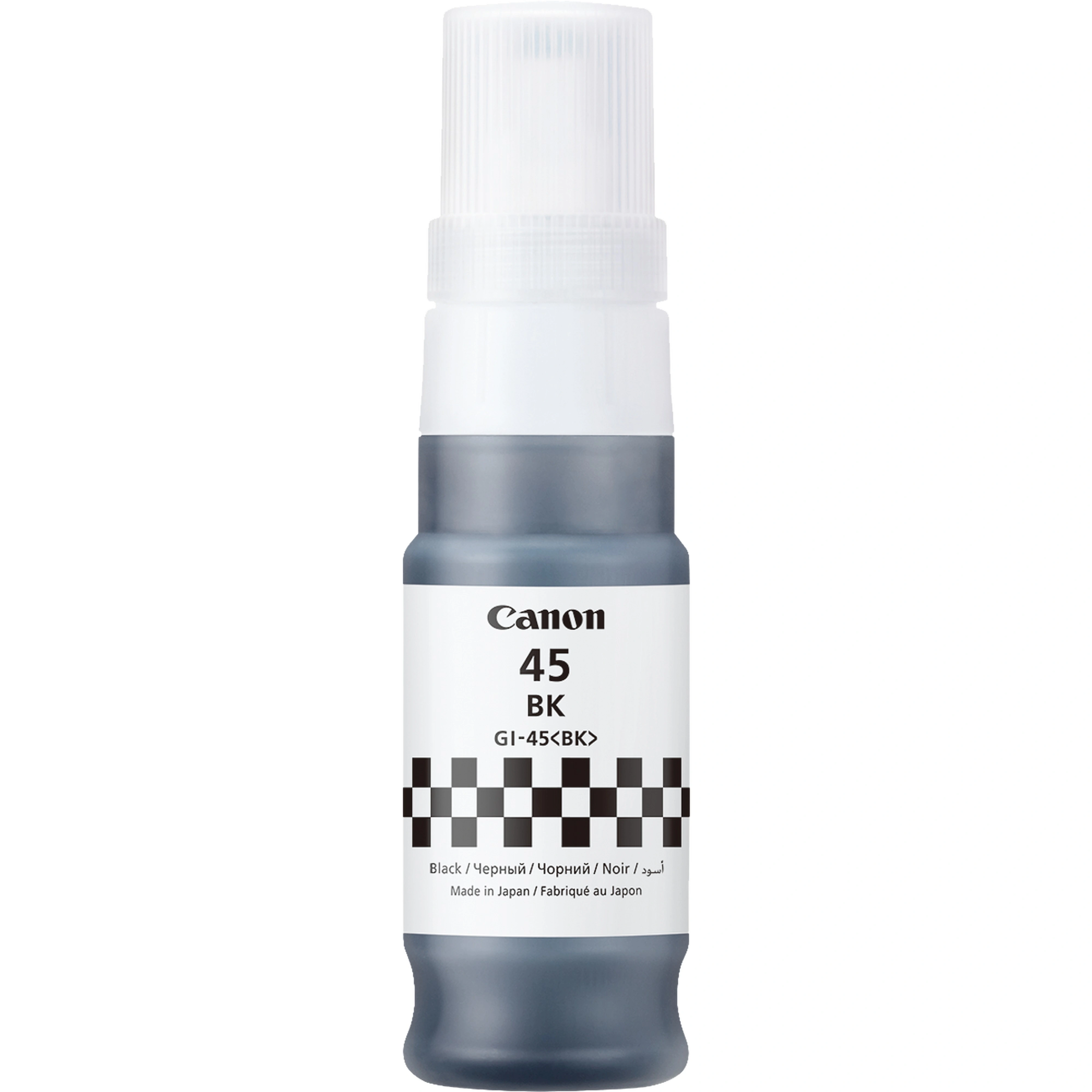 Чорнильниця Canon GI-45 BK забезпечує чітке пігментне чорнило для друку ділових документів і фотографій удома та на роботі.