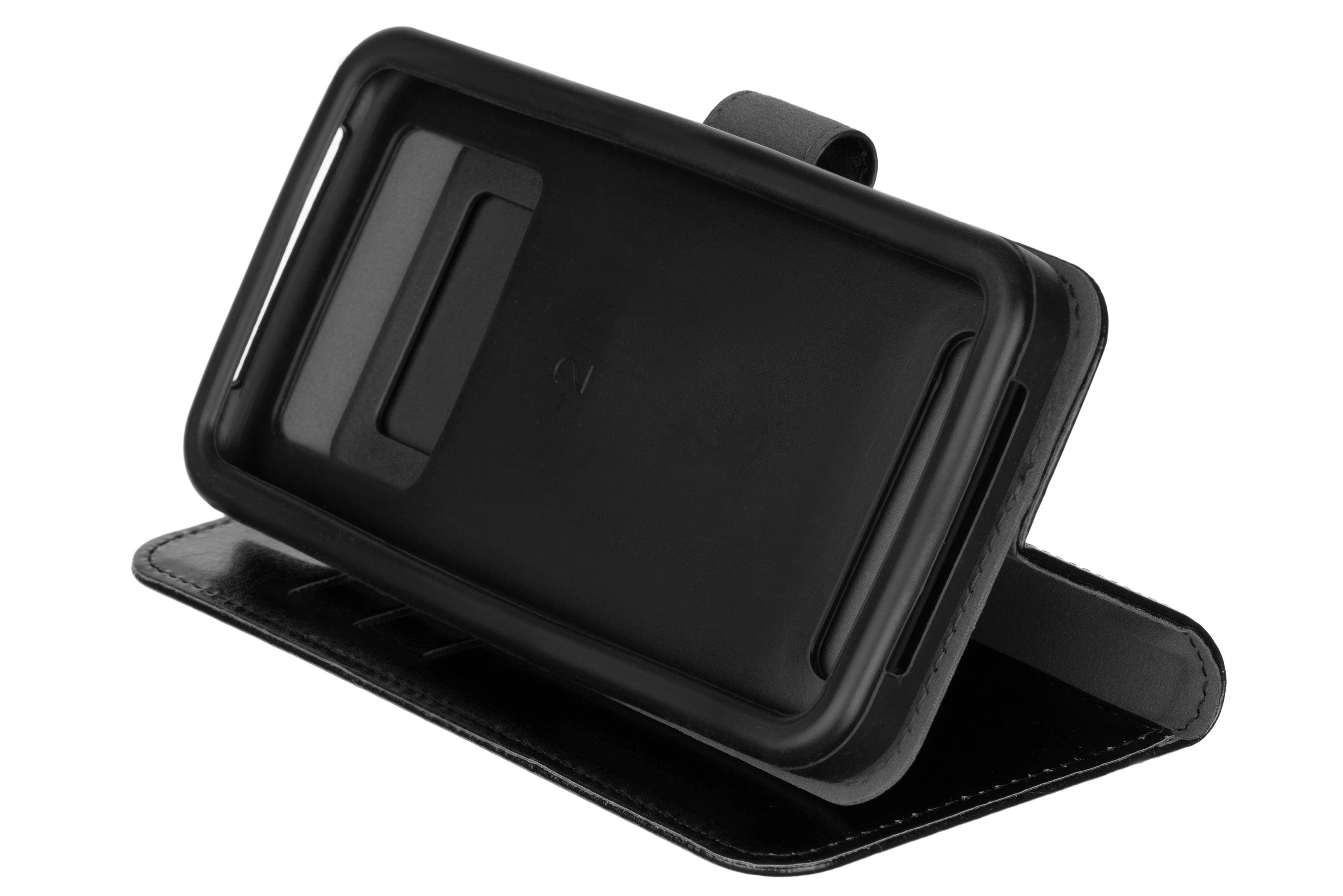 Зовні чохол виконаний з шовковистої матової PU шкіри, внутрішній шар з мікрофібри. Щільний силіконовий тримач для смартфона товщиною 2 мм стійкий до розтягування і щоденного зносу. Для зручного користування камерою є вбудований слайдер. Закритий чохол надійно фіксується магнітної застібкою. Чохол може бути використаний в режимі стенду для читання і перегляду відео.