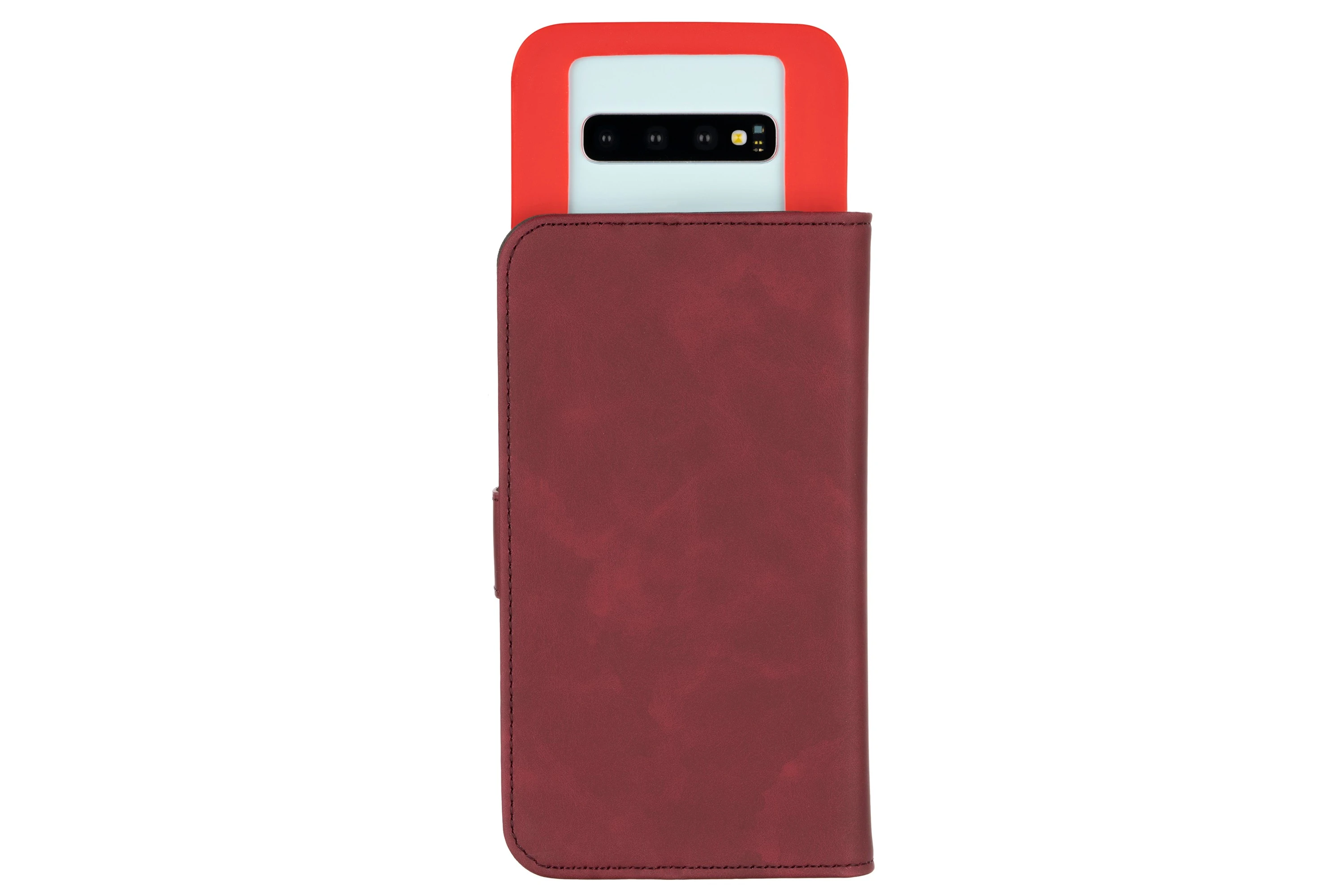 Зовні чохол виконаний з шовковистої матової PU шкіри, внутрішній шар з мікрофібри. Щільний силіконовий тримач для смартфона товщиною 2 мм стійкий до розтягування і щоденного зносу. Для зручного користування камерою є вбудований слайдер. Закритий чохол надійно фіксується магнітної застібкою. Чохол може бути використаний в режимі стенду для читання і перегляду відео.
