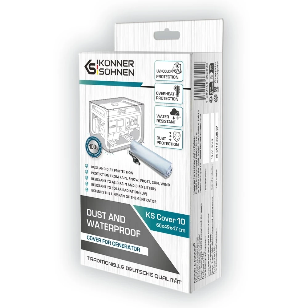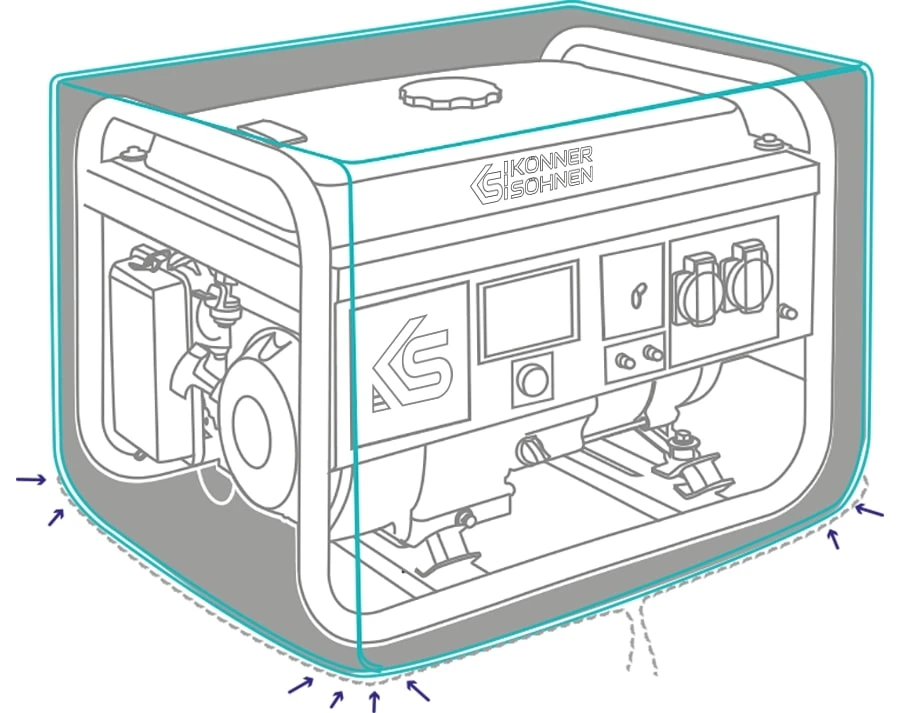 Вологостійкий та пилозахисний чохол для генератора. Підходить для всіх моделей бензинових генераторів серії KS 2900, KS 3000. Розмір: 60x49x47 см.