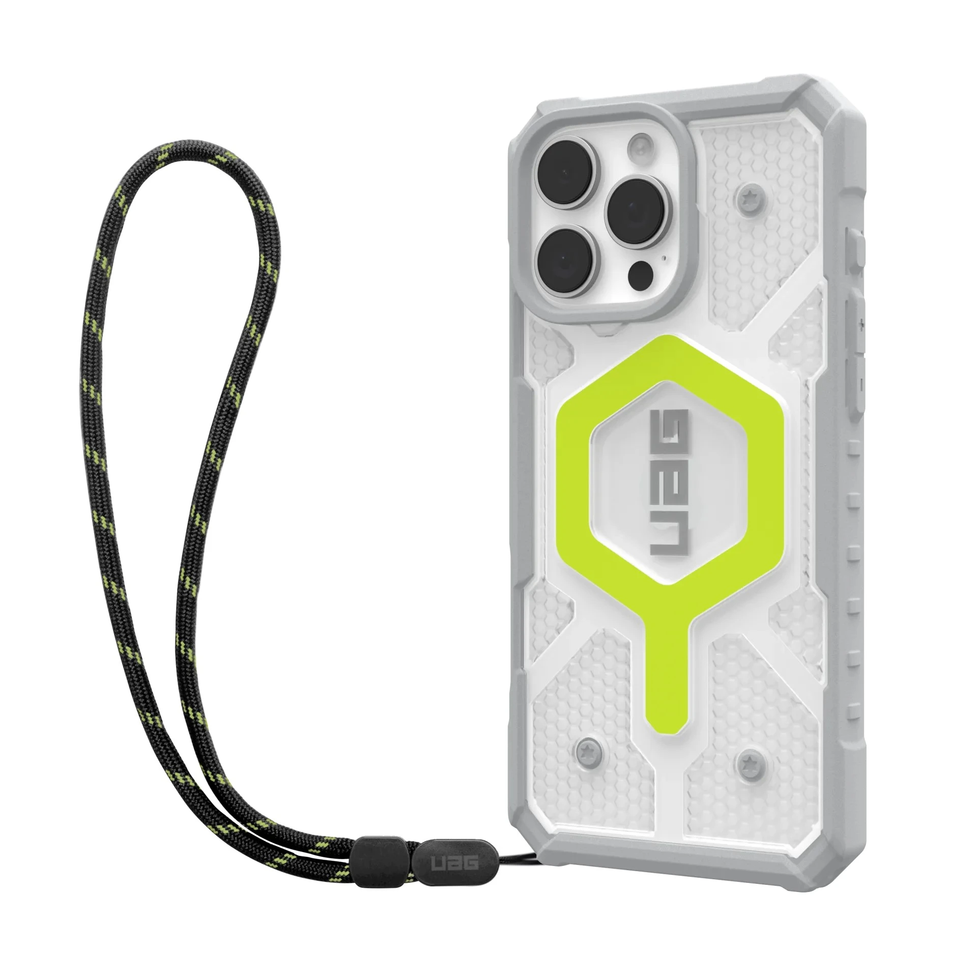 Чохол+ремінець UAG для iPhone 16 Pro Max, Pathfinder Clear Magsafe Bundle, Active Neon Lanyard