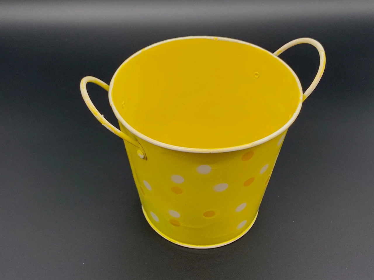Декоративне залізне відерце з квіточками колір жовтий 12х12см