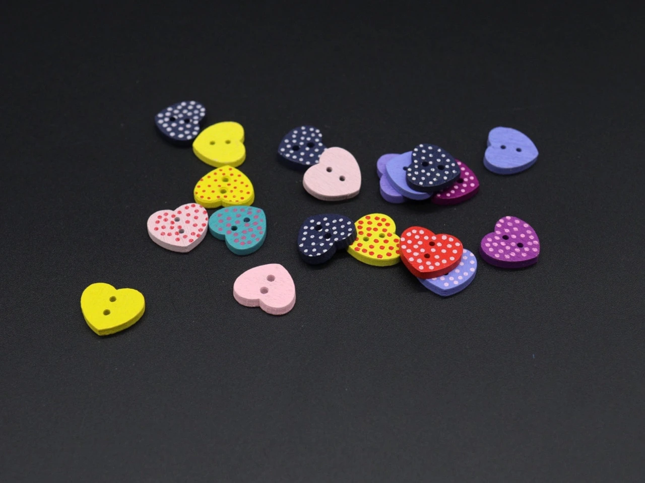 Пуговицы деревянные декоративные, Сердце, 15х14мм, Цвет «разноцветный»